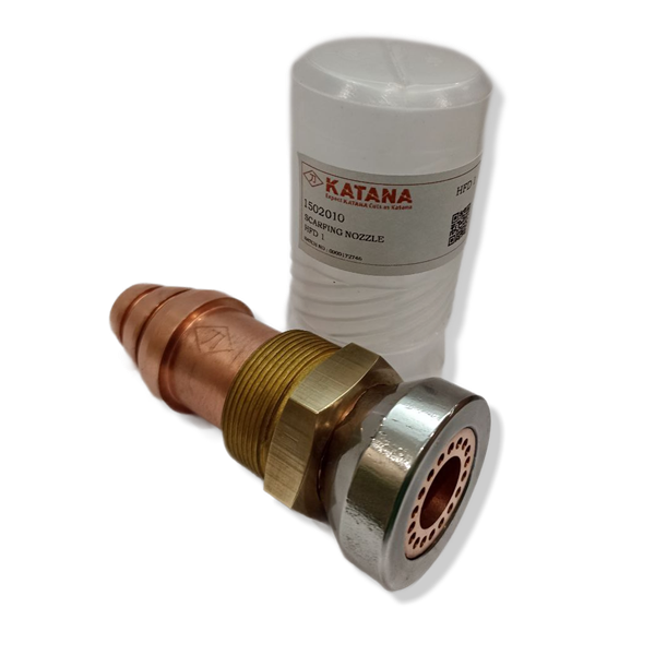 نازل اسکارفینگ مسی یکپارچه و سوراخکاریشده با طراحی میکس داخلی نازل. این نازل مسیر برادهبرداری پهن و تختی ایجاد میکند. نازل مسی یکپارچه به یک حلقه ضدسایش از جنس استلایت مجهز شده است تا طول عمر نازل افزایش یابد. این نازل برای استفاده در تمامی انواع مشعلهای اسکارفینگ مناسب است.